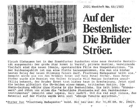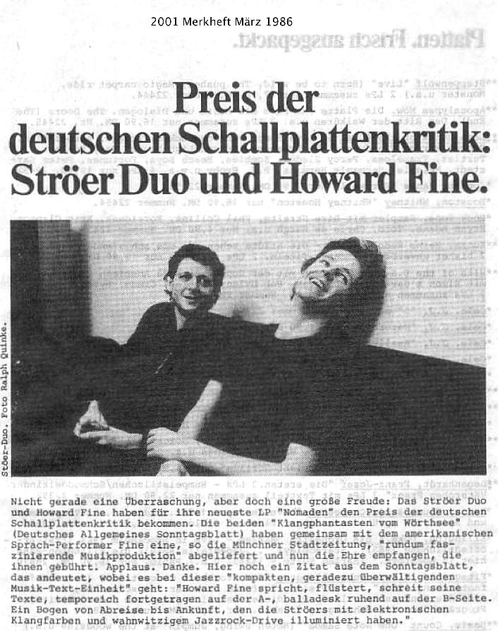 LP and Live-Act der STRÖER BROS mit Howard Fine. Preis der deutschen Schallplattenkritik.