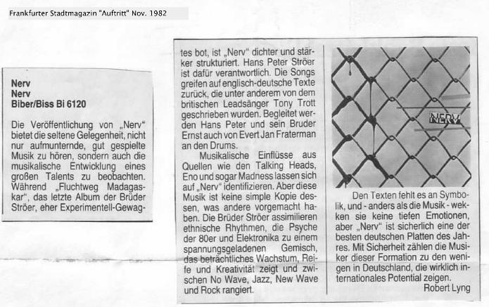 "Incredibly good synth/new wave pop from Germany. Sung in both languages German and English and done well(his voice is mid range and neutral/listenable regardless of the accent). There is a hint of post punk angst to a few tracks and a dash of experimentalist(something the Germans where very adamant about) approach perhaps rem. of Peter Gabriel's early works, Nice funky grooves by Hans Stroer and tight well recorded drumming compliments of Im guessing his brother. Its gems like this I hope one day will be released on cd as a one off release this deserved more attention to those audio archeologists like me who seek musical listening nourishment far from the mainstream drivel of the 21st century!" discogs