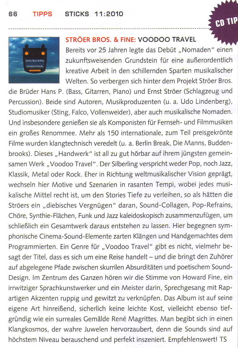 The CD "VOODOO TRAVEL" can be ordered at www.stroerbrosmedia.de.
